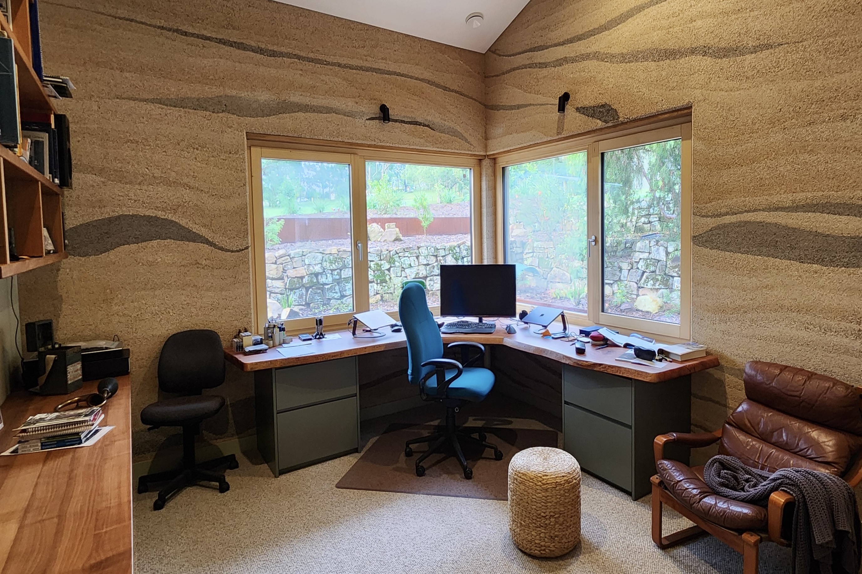 This project was designed by Dick Clarke, Envirotecture’s founding director. Dick is well known for his passionate advocacy of hemp as a building material. In this comprehensive article in Sanctuary 2018, he wrote of hemp’s many benefits, all reasons why “so many of us are so enthusiastic. Hemp is thermally efficient–it controls heat flows through the wall. It is breathable–it moderates internal humidity. It is non-flammable–it is safe and Code-compliant in cooking spaces and bushfire zones. It is long-lasting–provided the detailing and construction quality is good and maintenance is carried out (as with any building), hemp will last hundreds of years.”