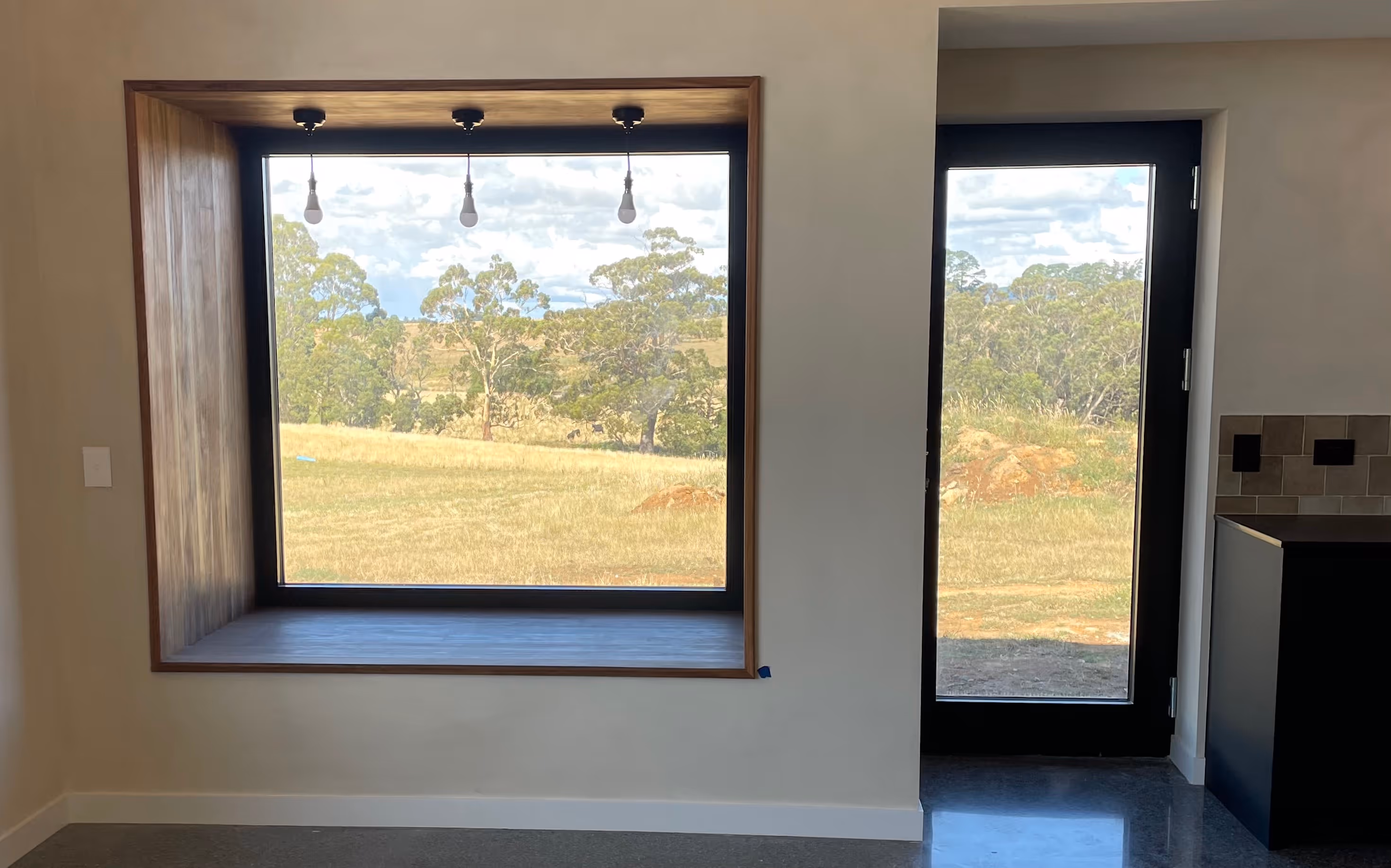 Visually the roofline is very light, a clever floating effect that belies the volume of insulation it contains. It sits on 300mm thick timber-framed walls and a structural slab with insulated polished screed. The roof design creates large internal volumes, with raked ceilings featuring. External materials were carefully chosen for their capacity to resist bushfire attack.