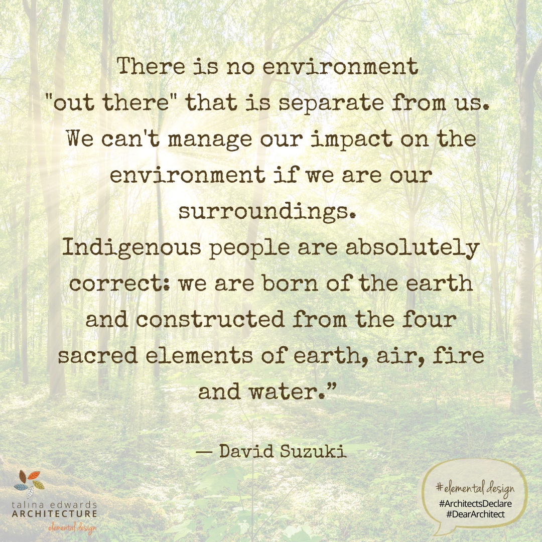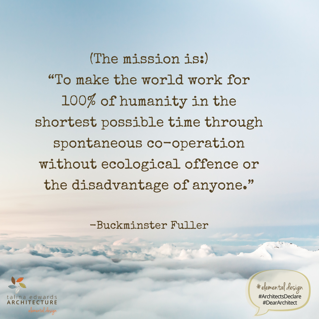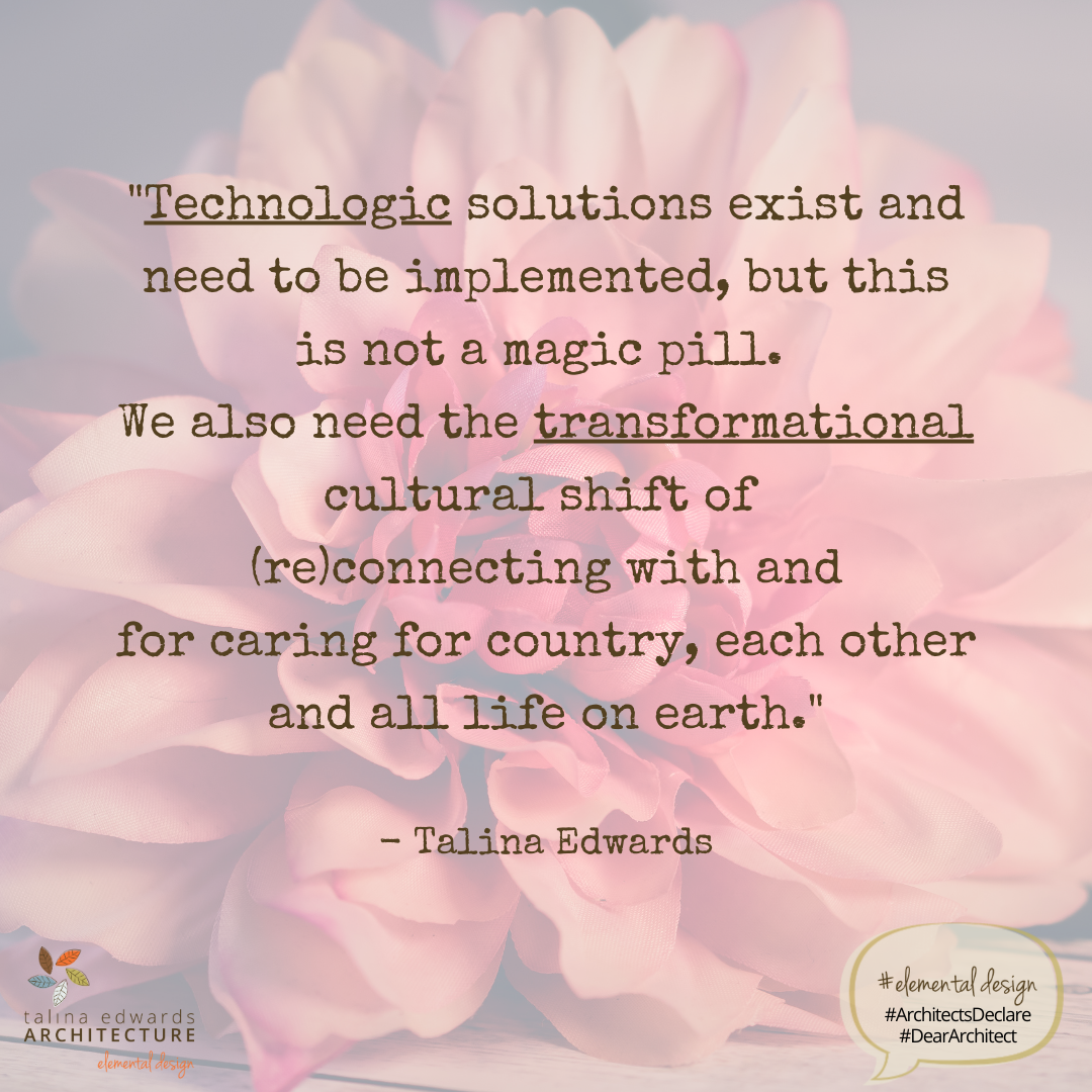 I’m passionate about designing buildings that are healthy, beautiful, functional, comfortable, resilient and sustainable that inhabitants love, that don’t cost the earth – this forms our elemental-design philosophy (footnote: www.talinaedwards.com.au).