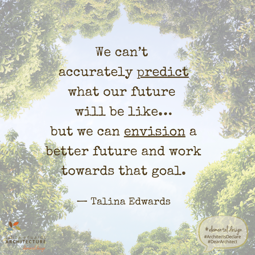 Indulge me (you) for a moment by contemplating the future and your vision for it. (Footnote: Thanks to Stephen Choi Living Future Institute Symposium – Sydney 2019. Biophilic Design workshop exercise).