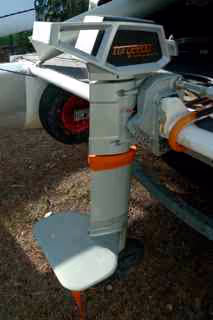 The motor is a Torqueedo Cruise 2.0R two kilowatt electric outboard. This is a nice example of German engineering with a price tag to match compared to cheaper Chinese motors.
